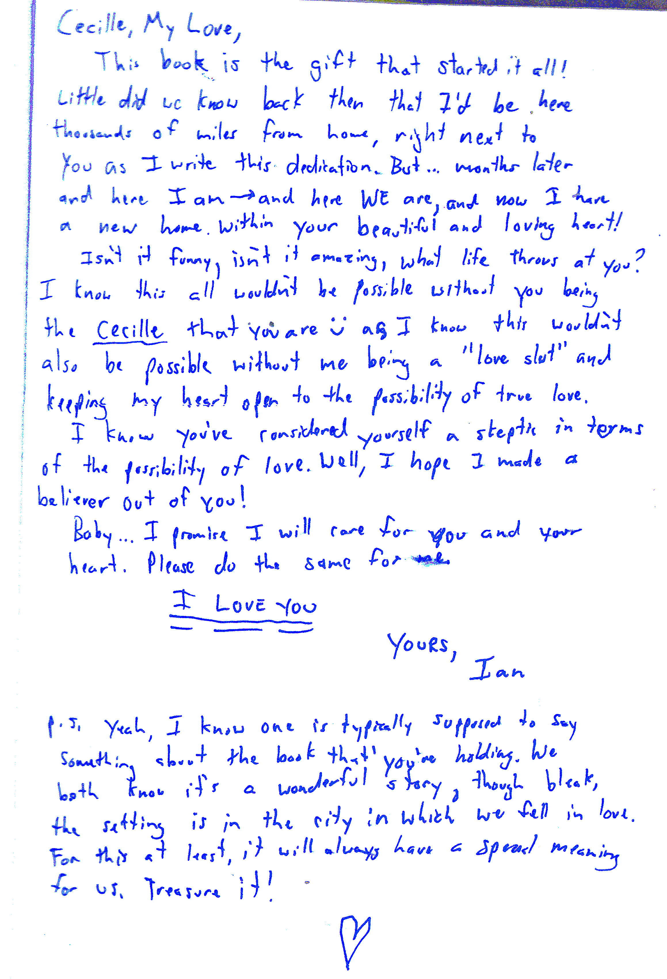 A few days before I got my mail, Ian went online to buy me a book. Little did he know, a few months after that blessed day, he would go online again and buy a plane ticket to see his own Emiko in a country he never thought he would set foot in. He thought of sending me a book and when I got it, for me Ian became someone real and tangible, proof that I wasn’t just dreaming of this man that had only existed on my computer screen. Little did I know that a few months later, I would actually get to experience the touch of his hand, the feel of his skin against mine, the warmth of his arms around me, and the head-spinning feeling he is all-so-capable of giving me: like an explosion of emotions, a blast of sensations, an orgasm of the soul. Because just like what Emiko found in Anderson Lake, my soul has found the one she has been looking for. ♥