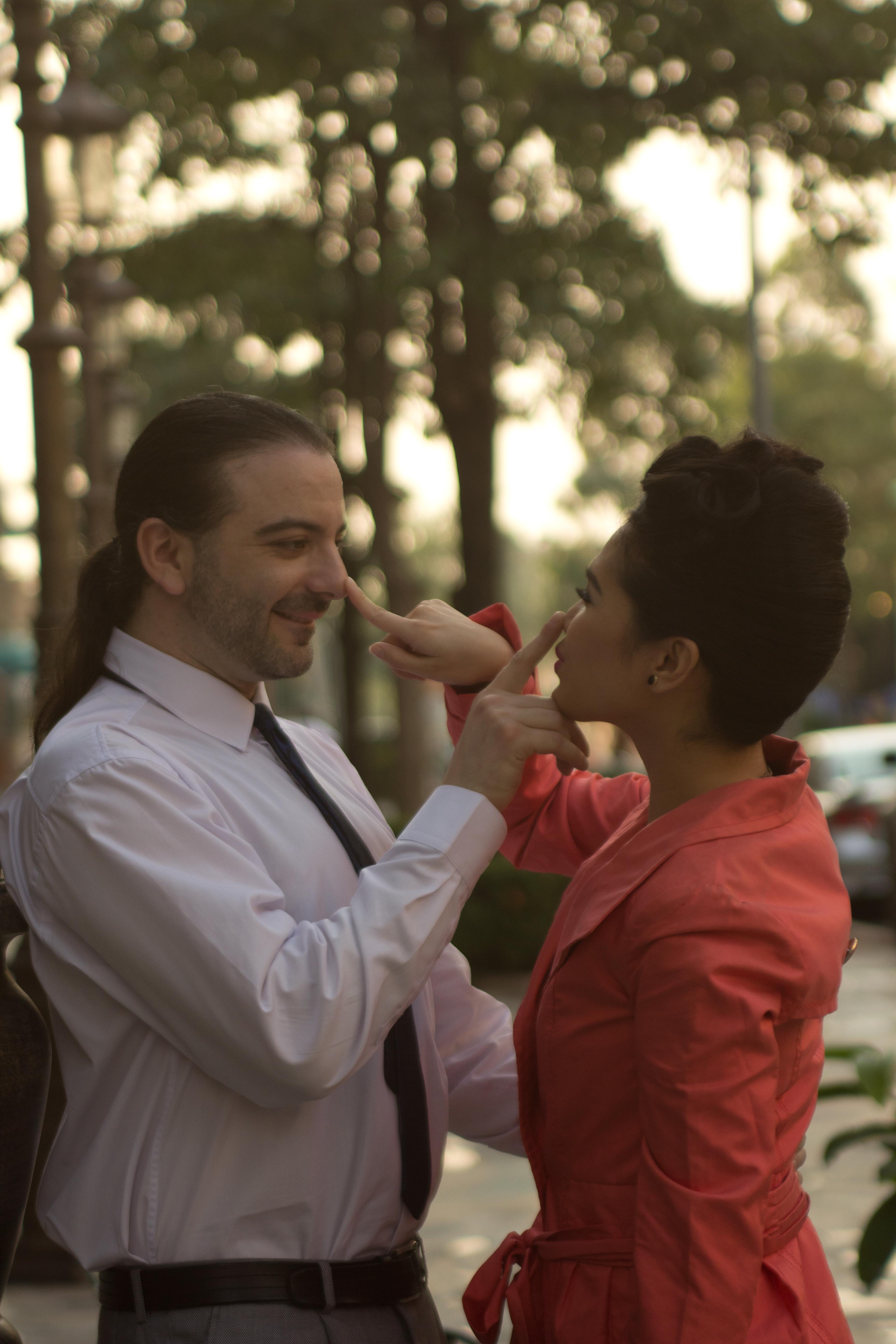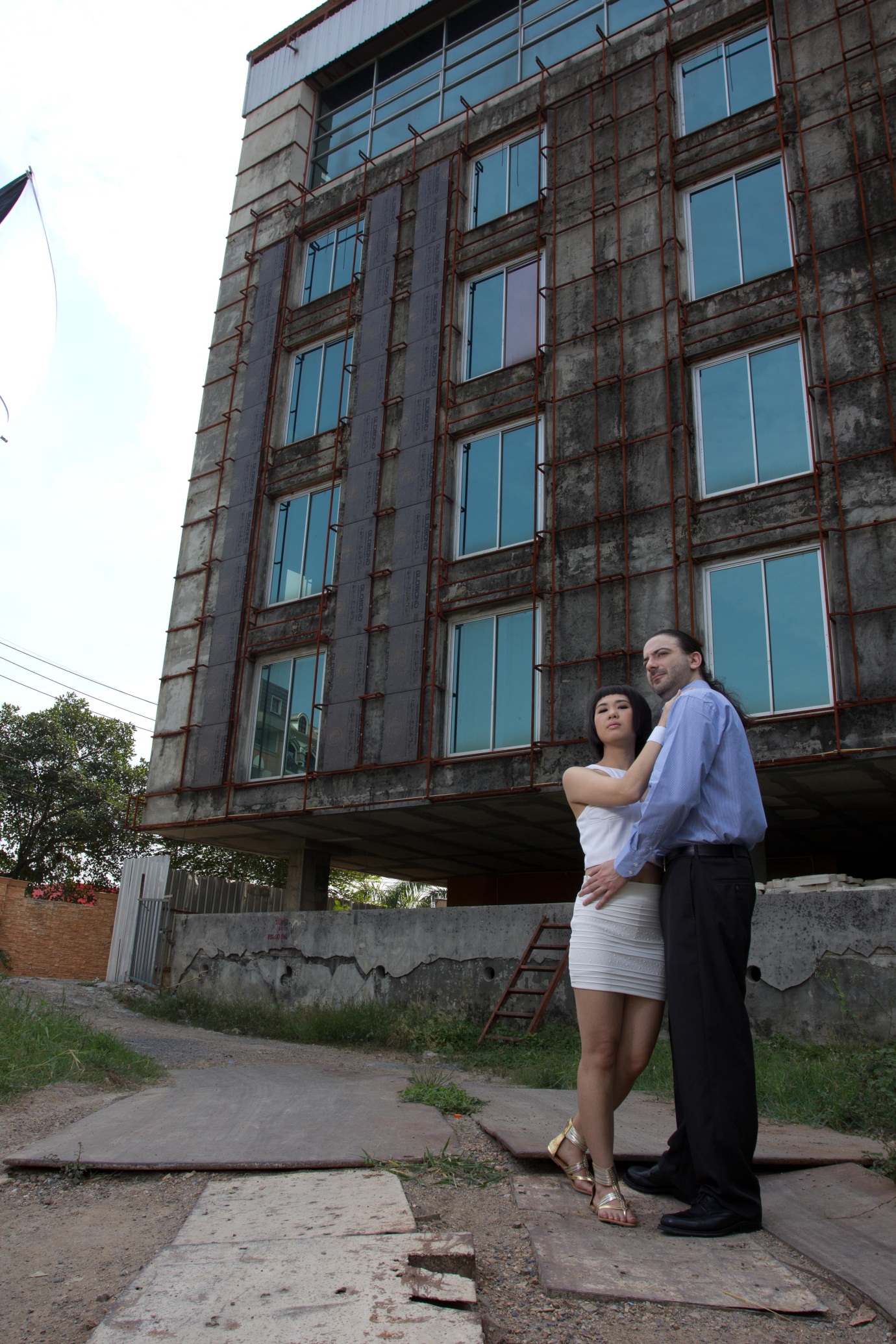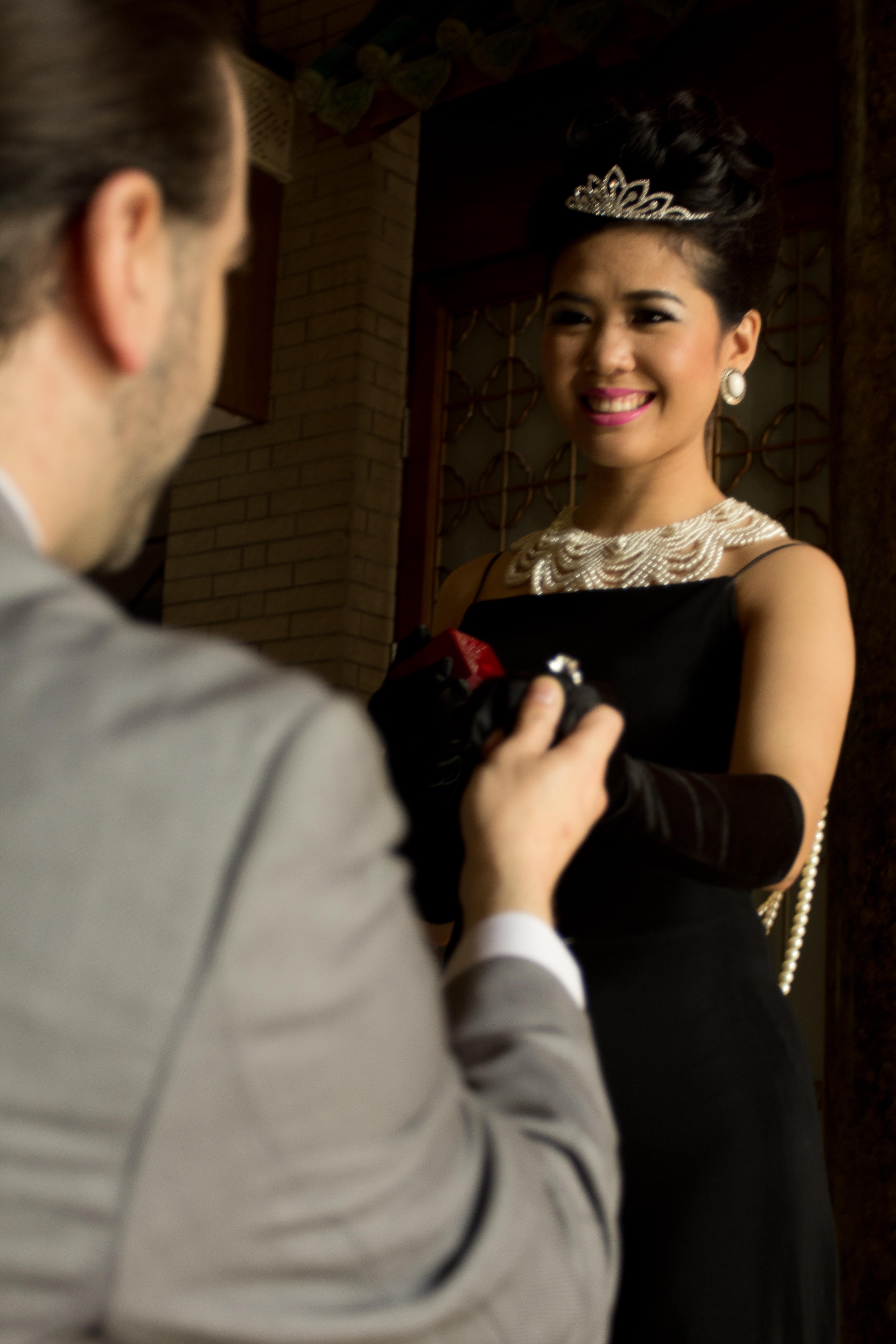 Maybe she is a mail-order bride. Maybe he picked her out of a catalogue, or plucked her from the rice paddies.